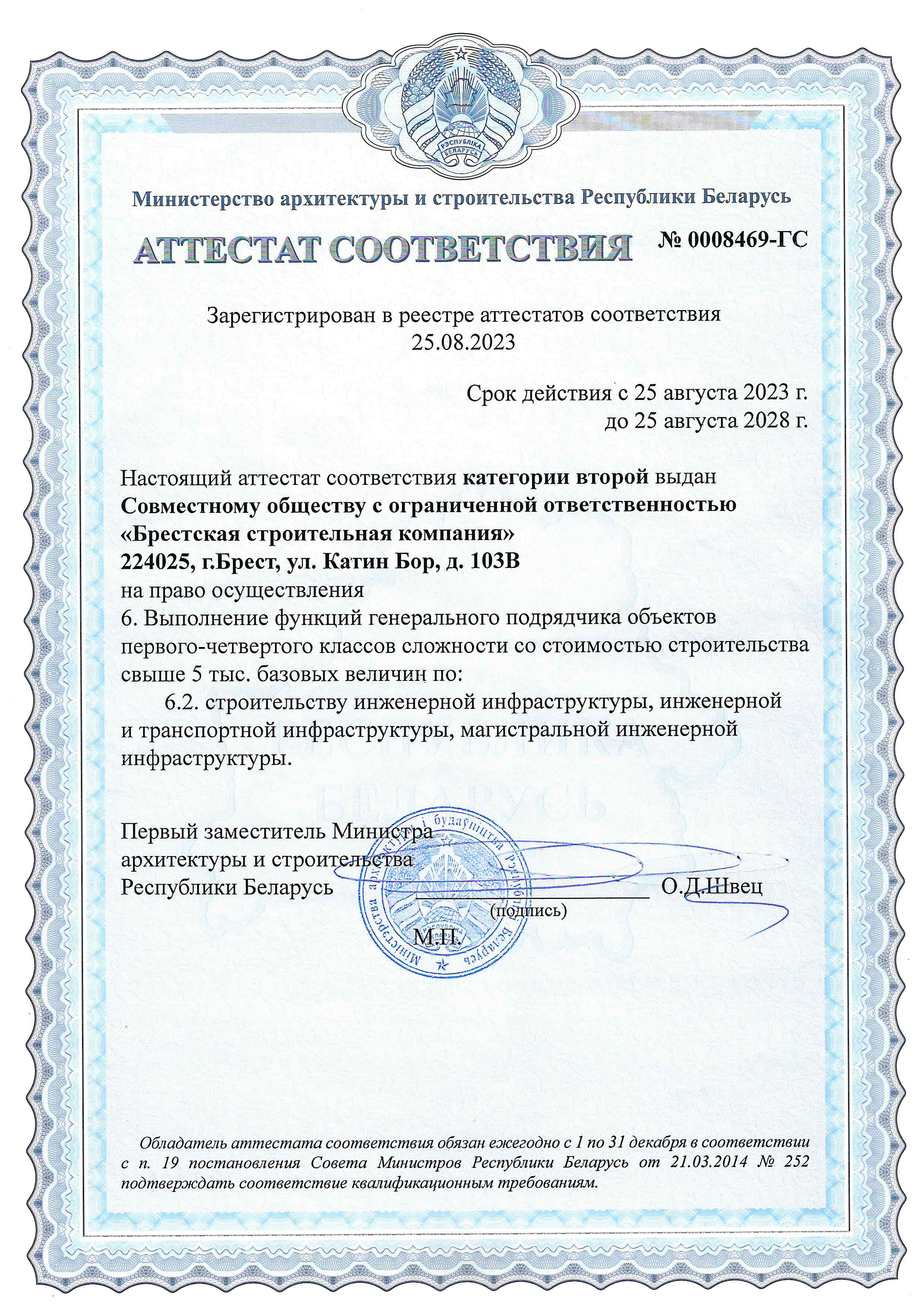 • устройство оснований под здание (сертификат)